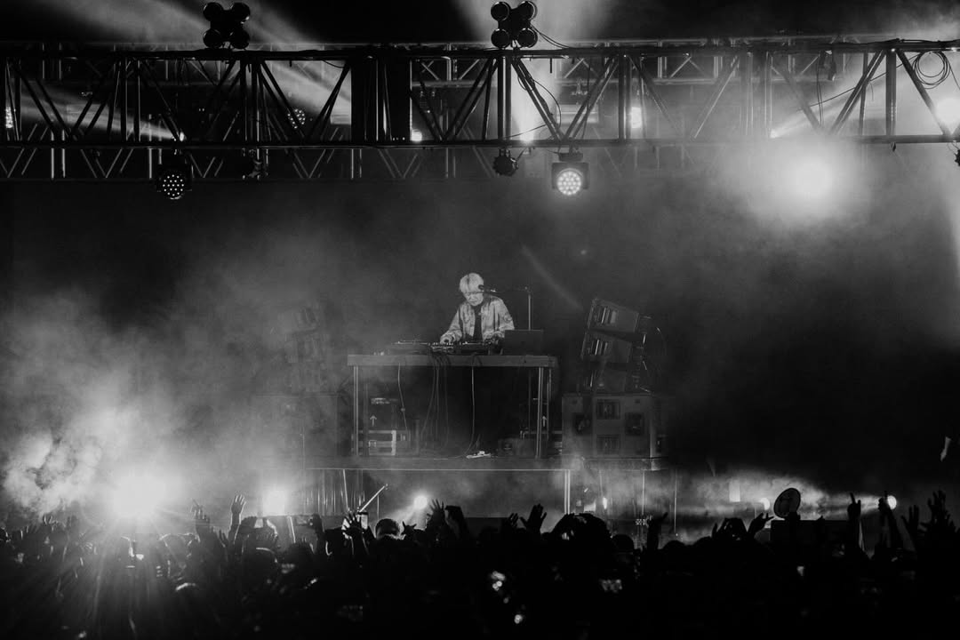 El arranque entra directo sin la intención de construir expectativas. Las bases caen y el flujo de R-Shitei se instala sin rodeos, rápido. Matsunaga responde desde la consola con cortes que marca el ritmo de un show que no se apoya en visuales espectaculares ni en una banda detrás. Todo pasa ahí, entre voz y tornamesas.